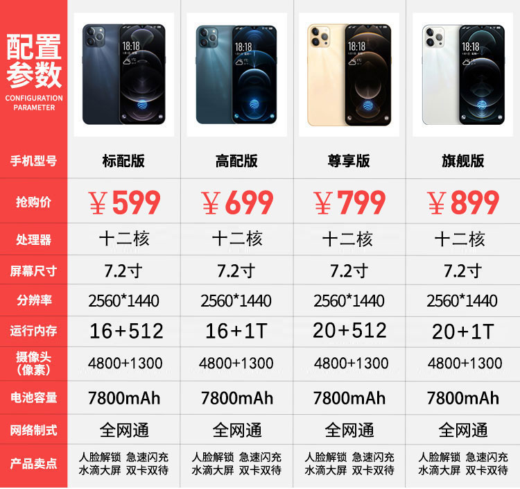 2025款上市新款(高端高端手机)五周年活动大促销,订购即送手机壳+钢化膜大礼包,品牌保证,15天包退,30天包换。京东包邮,货到满意才付款!最新产品,7.2寸美人穿孔屏+纳米渐变色机身+3D专业电竞放生芯片+红外夜视人脸识别+指纹解锁+应用分身+护眼模式+7800毫安超大续航电池+快充+电竞十核处理器+A18美颜摄影。限时特惠,数量有限,先到先得! 1T大内存,原价7999元秒杀价699元